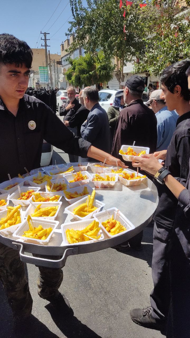 هیأت های عزاداری نیز در کنار سایر شهروندان اقدام به پخش نذورات کردند.